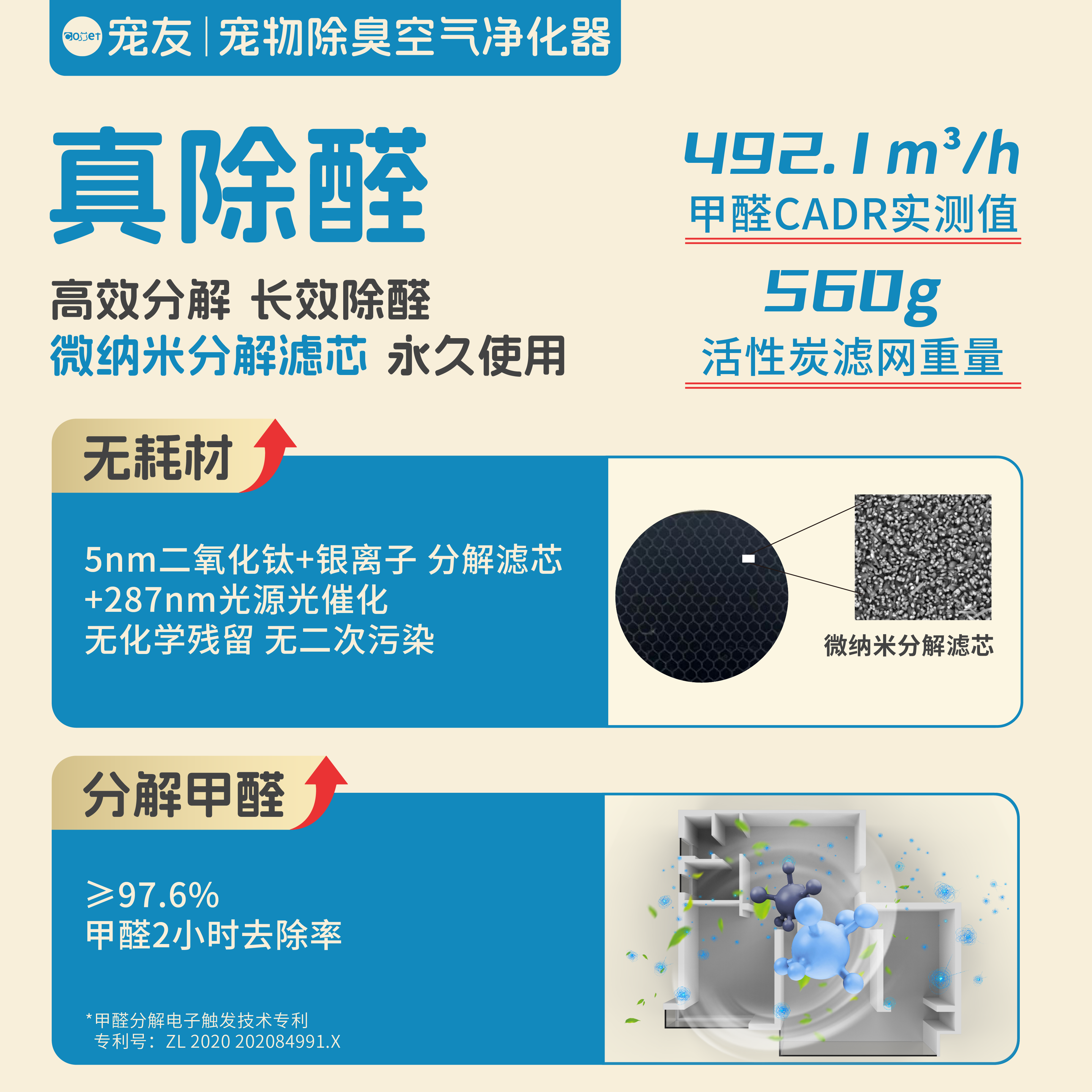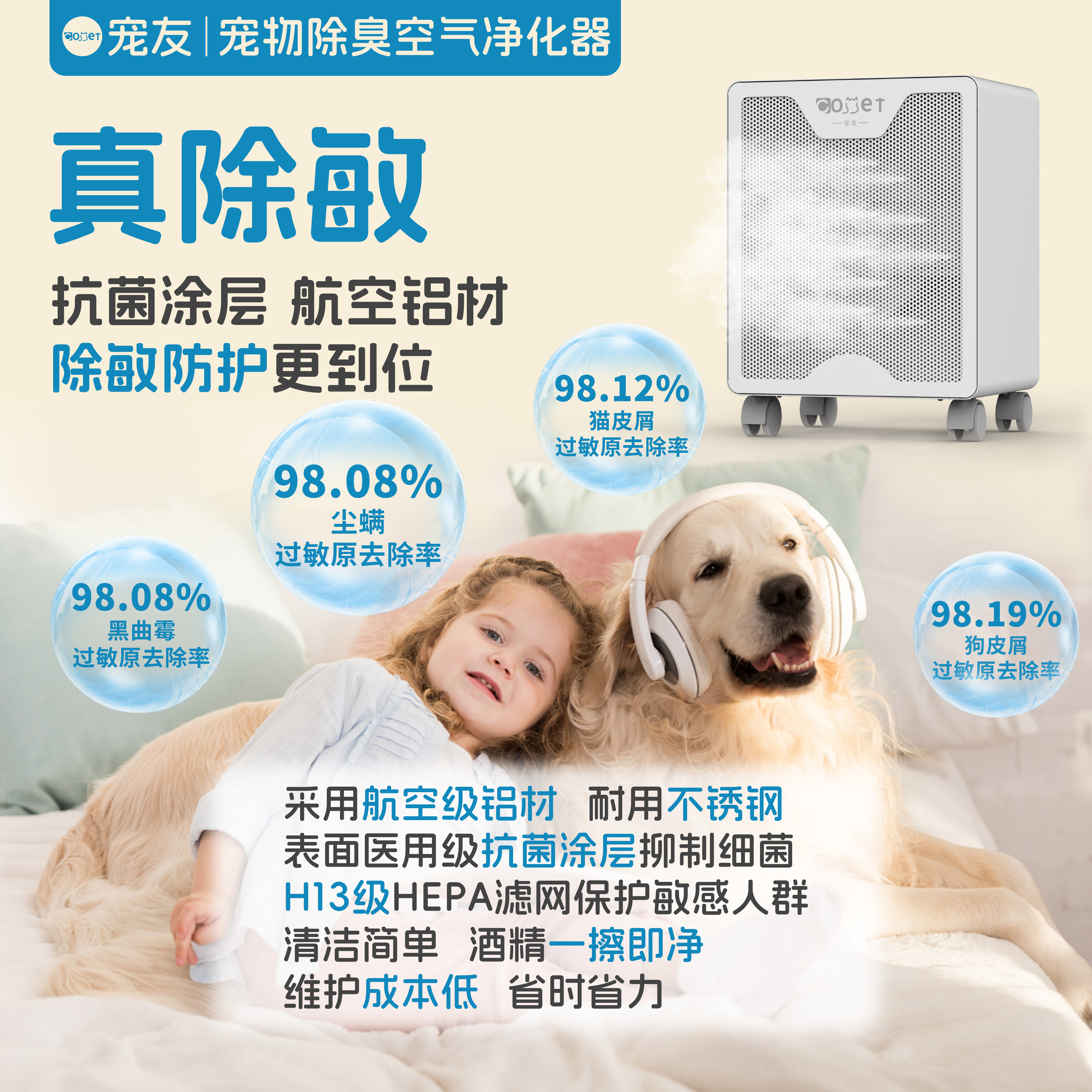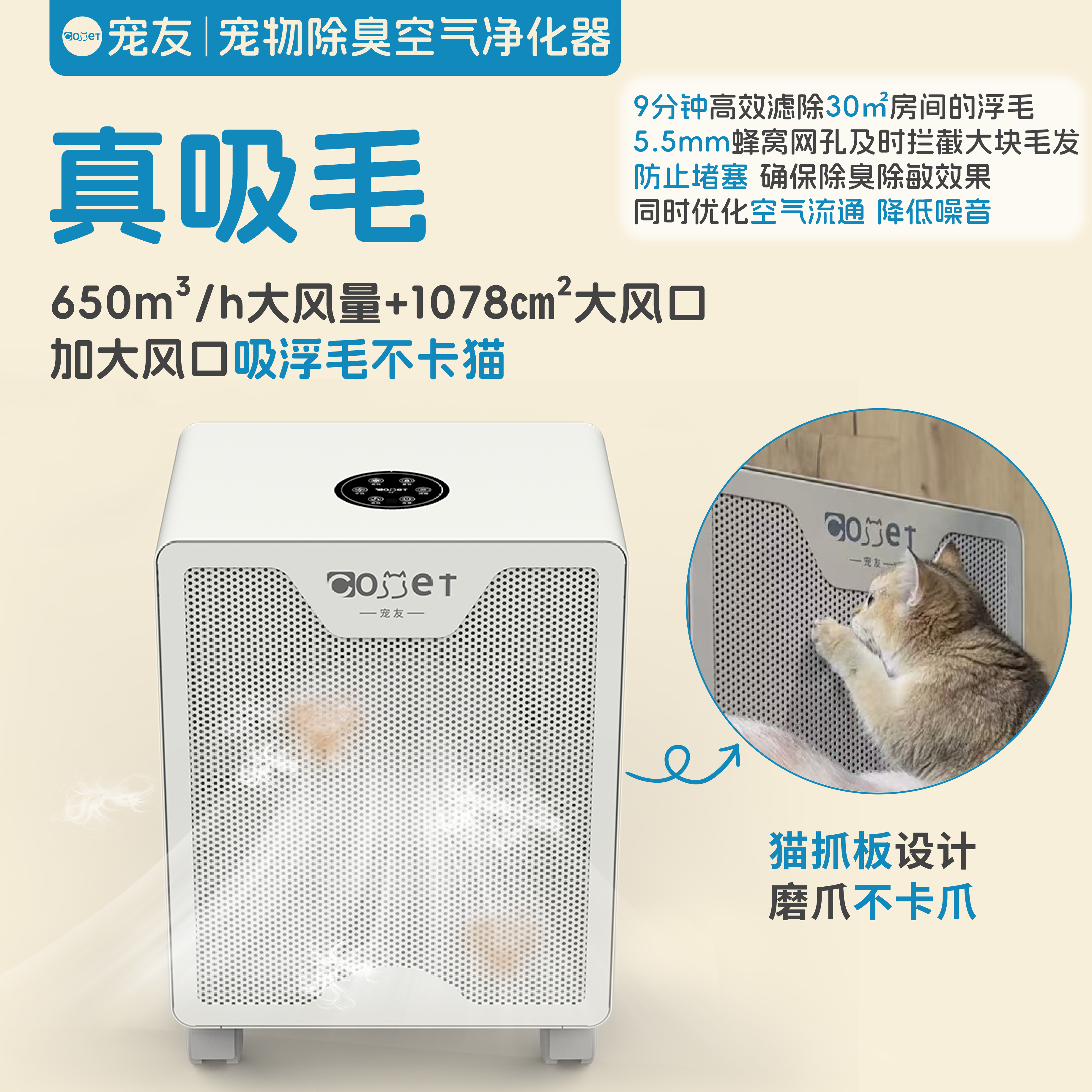 宠友多宠异宠专用宠物除臭空气净化器宠物家用除甲醛防过敏原净化