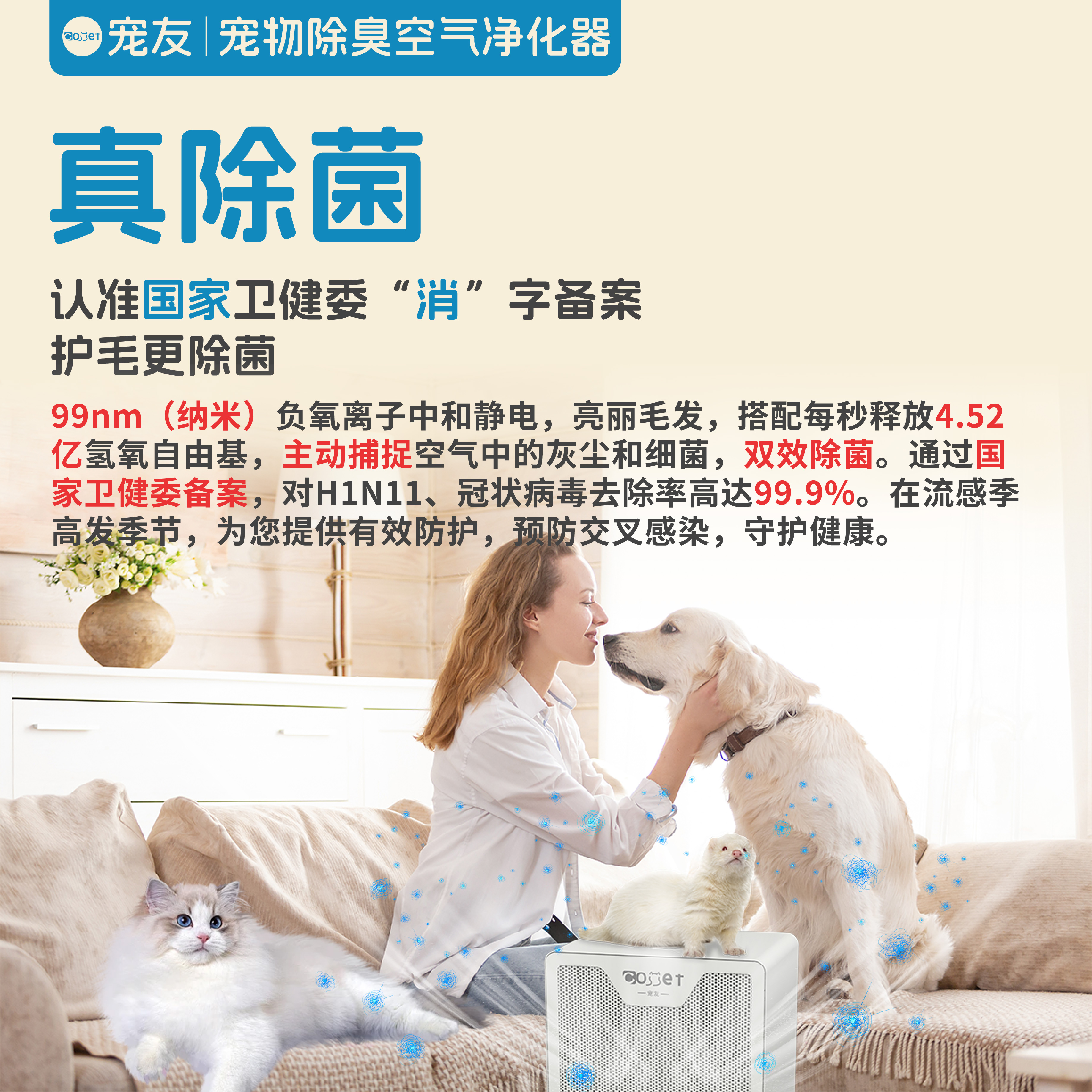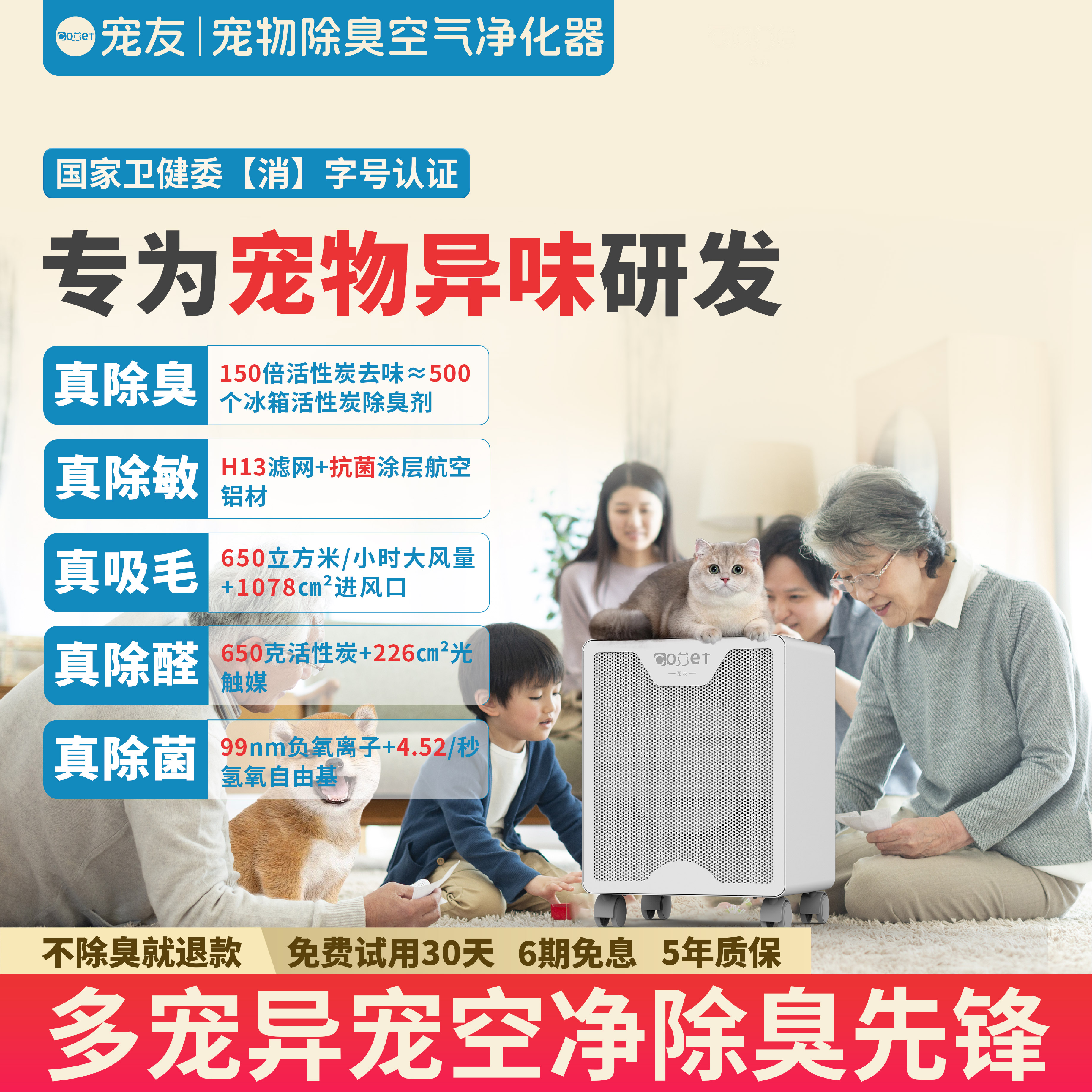 宠友多宠异宠专用宠物除臭宠物空气净化器