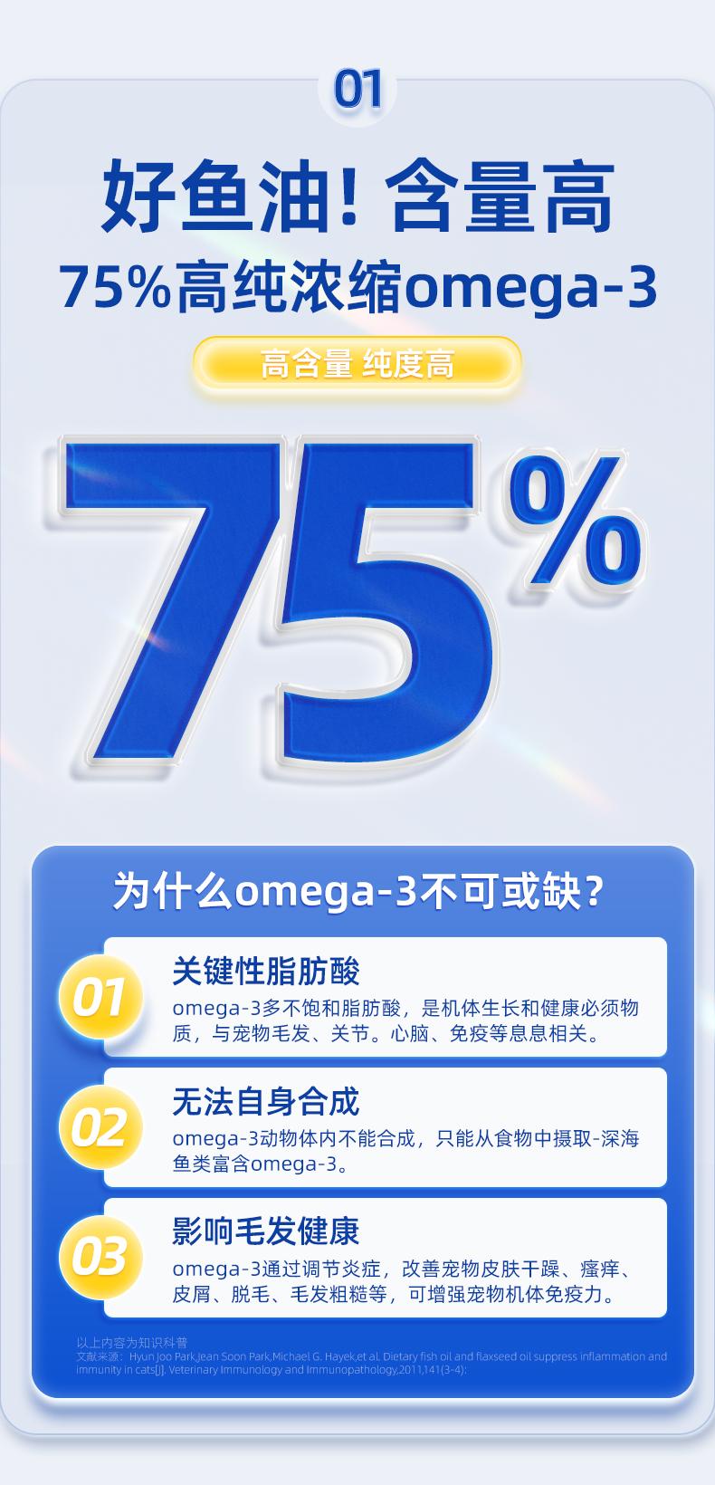 75%鱼油新标杆OMEGA-3 秘鲁进口凤尾鱼鱼油·犬用 选择“唯特适”鱼油 为宠物健康 保驾护航 好鱼油! 含量高 75%高纯浓缩omega-3