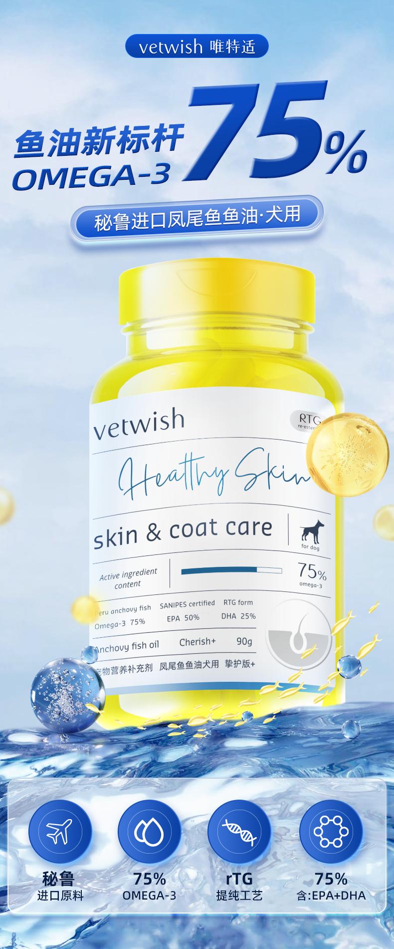 vetwish唯特适宠物鱼油75%美毛亮毛营养健康 犬用猫用90g