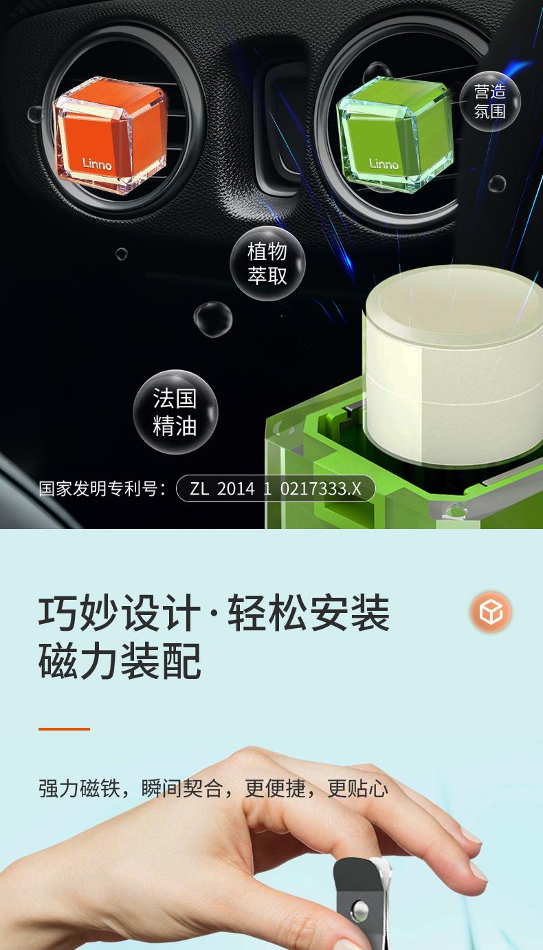 Linno/朗龙车载香薰出风口汽车香水汽车摆件去异味可替换进口方糖