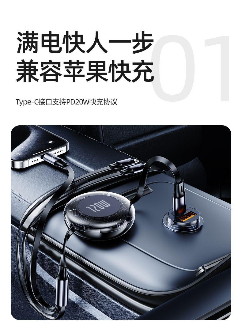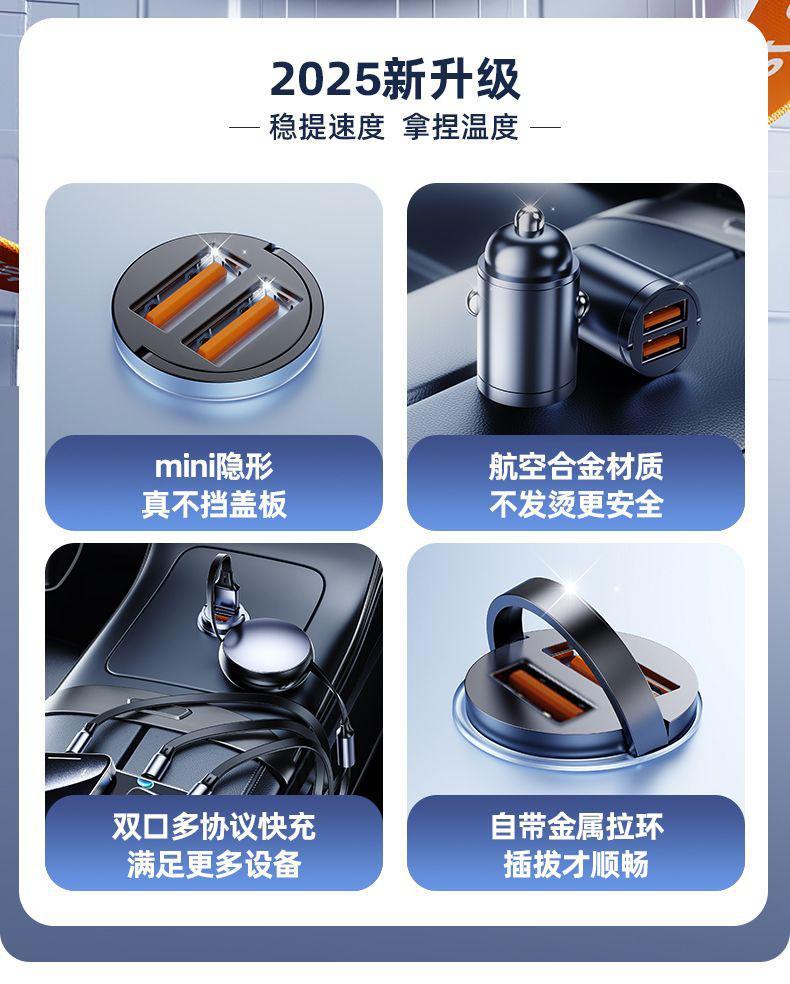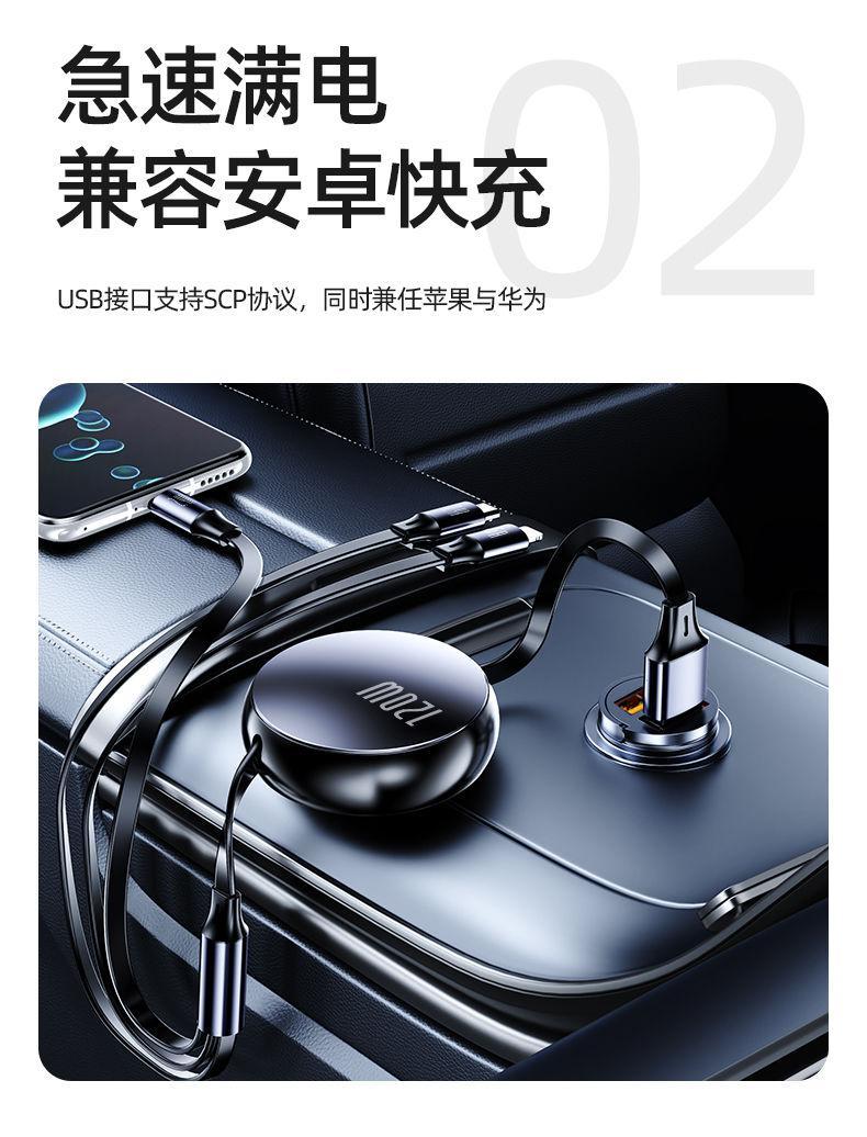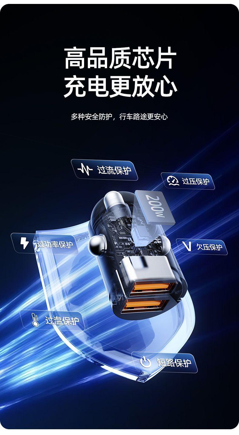 隐藏式车载充电器200W手机超级快充头汽车用隐形点烟器迷你转换口