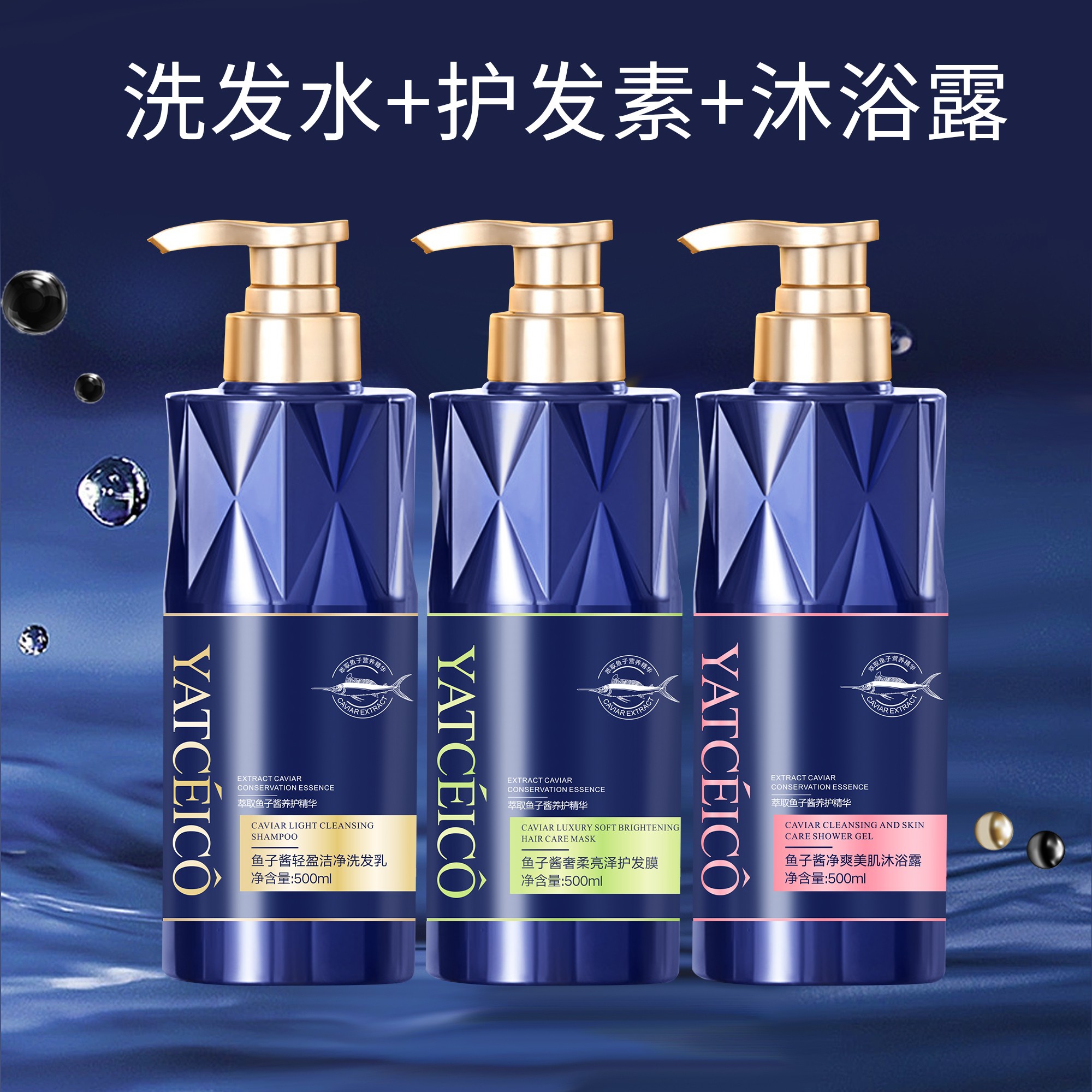 YATCEICO鱼子酱洗发水露沐浴露护发素三件套持久留香