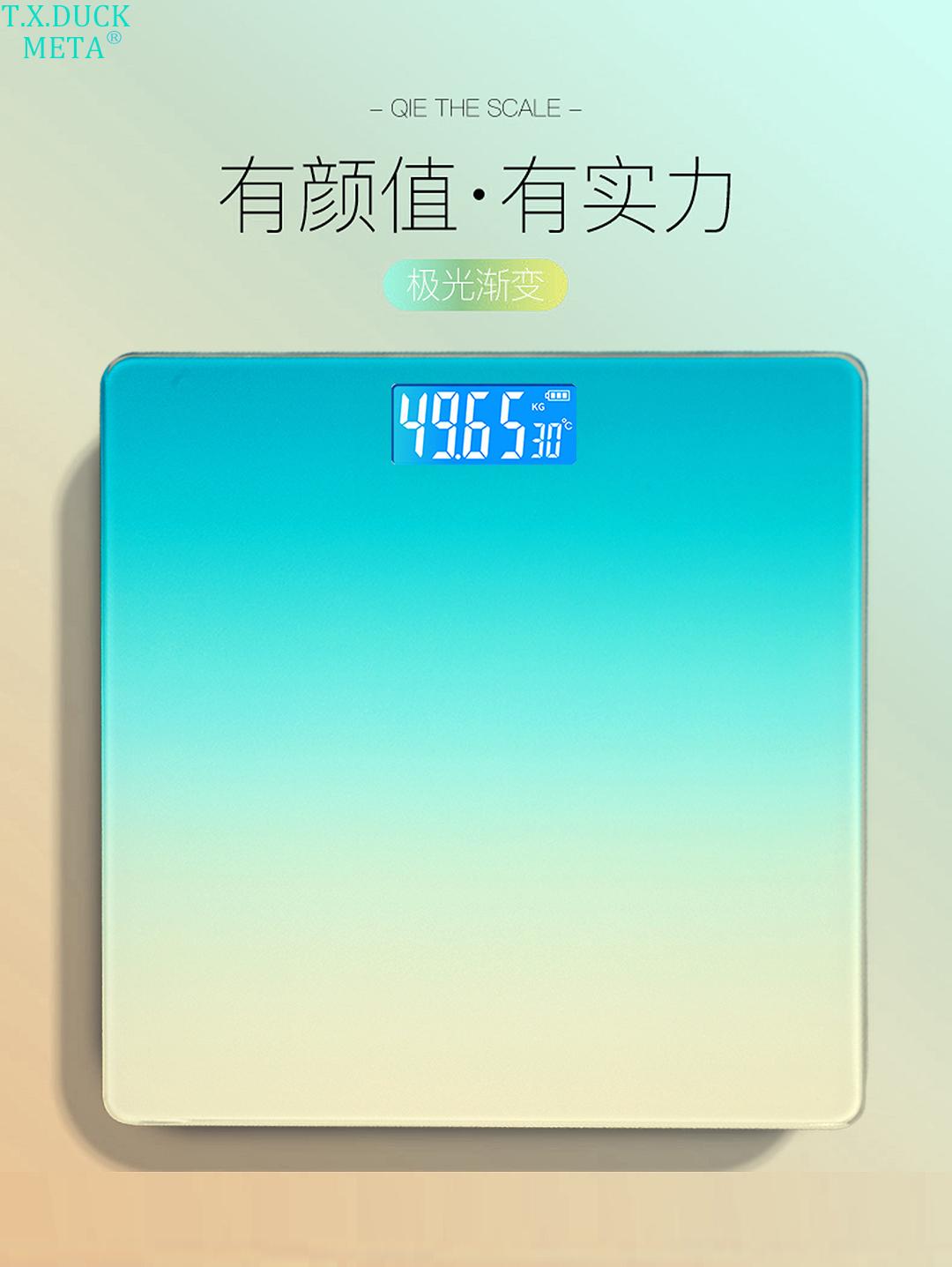 新款体重秤家用智能精准感应学生宿舍减肥人体电子称极光渐变色