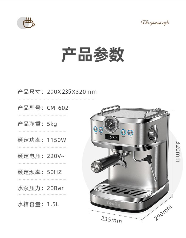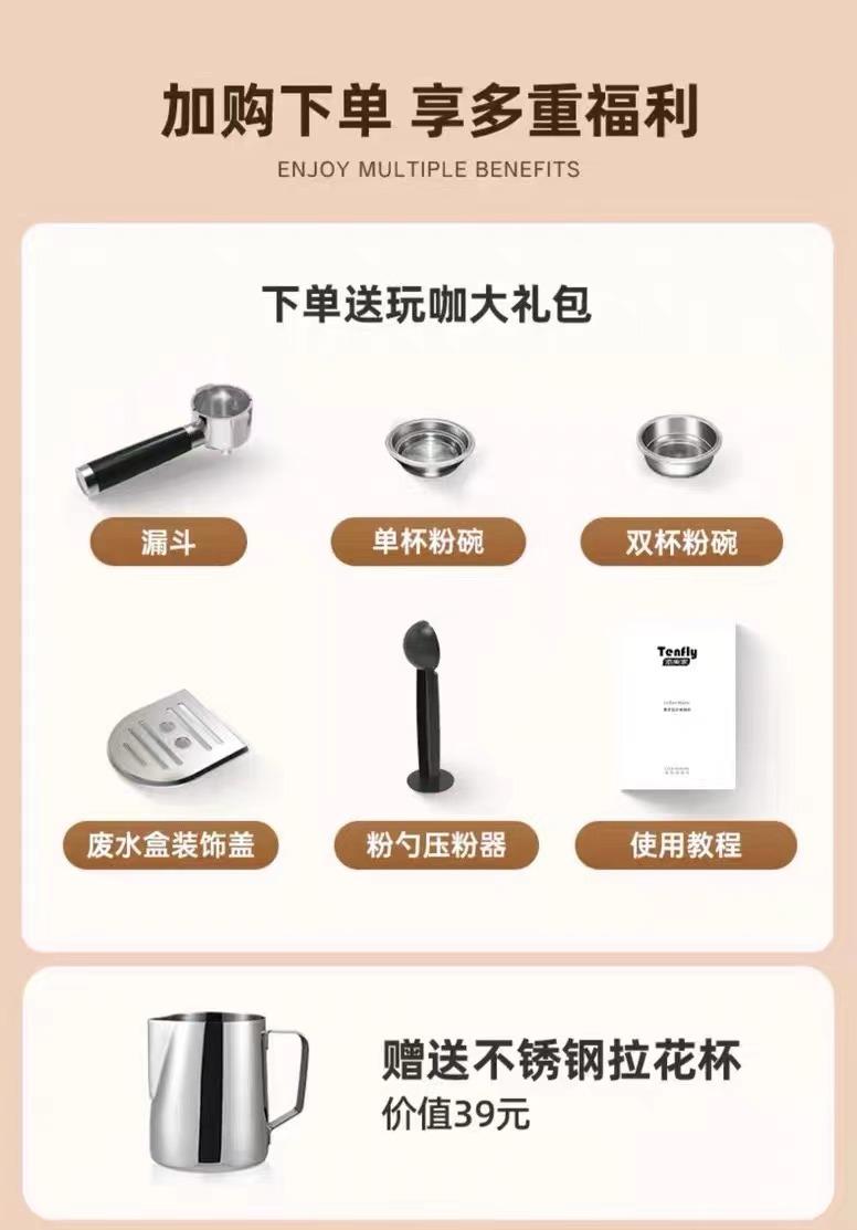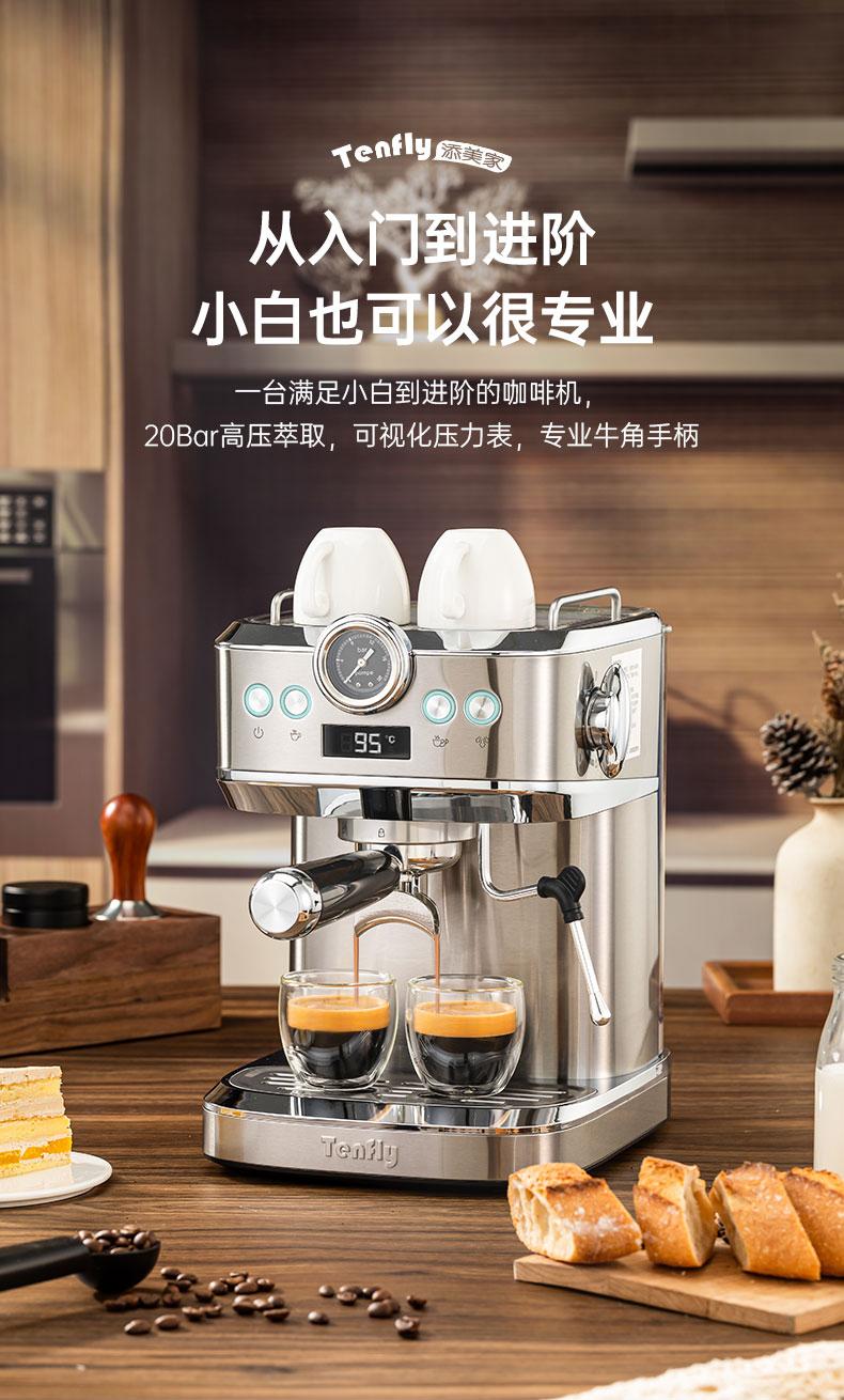 Tenfly家用小型半自动打奶泡不锈钢复古多功能台式花式意式商用