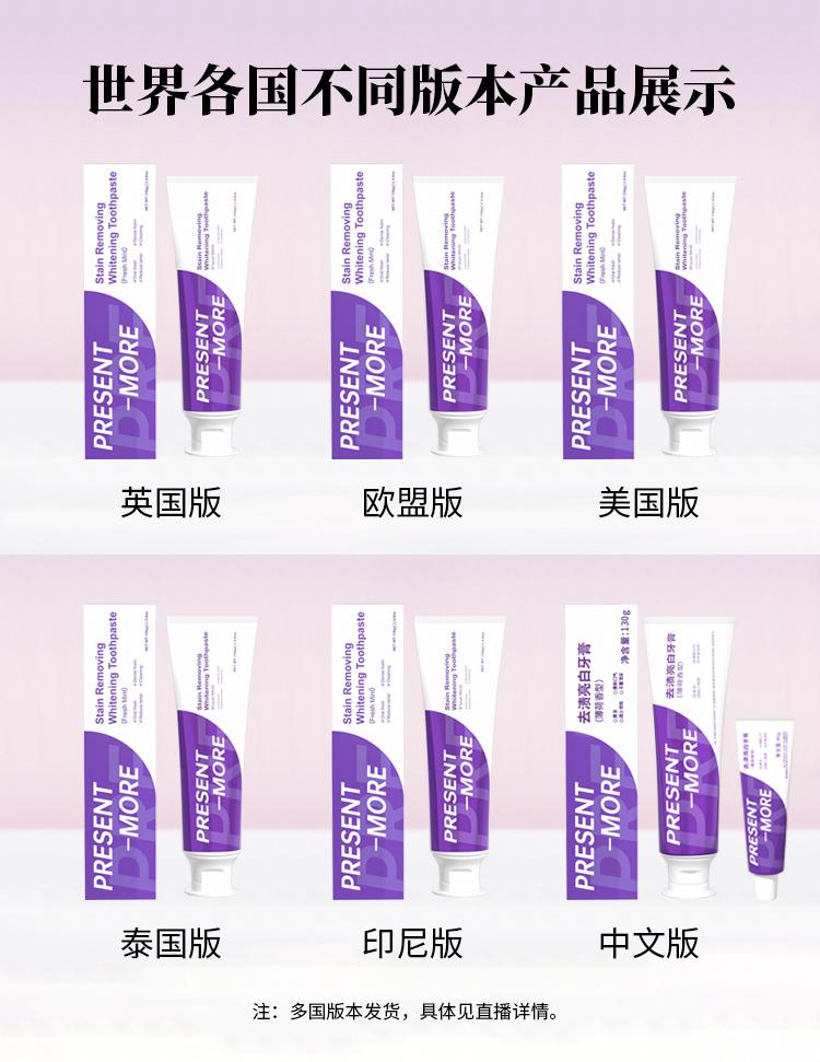 源自英国Present-More普斯特去渍亮白牙膏不含氟口腔护理牙膏去黄