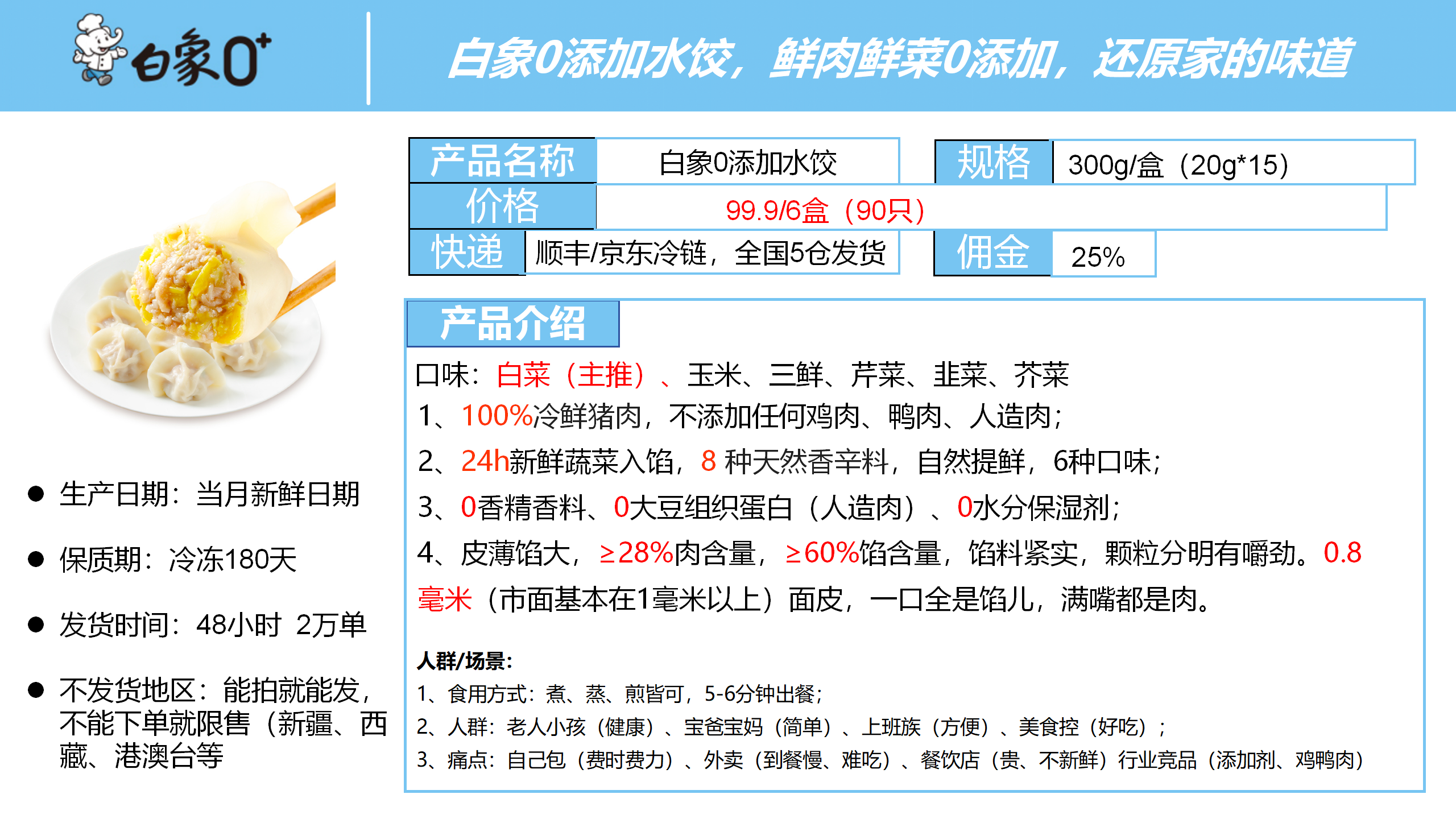 真正0添加产品, 从原材料就有0添加检测报告,水饺类目销额前三