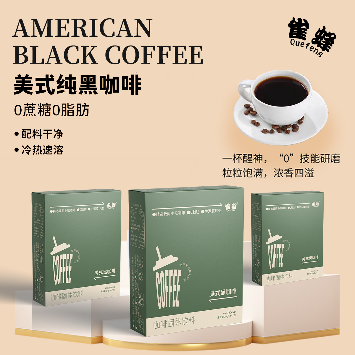 雀蜂云南小粒微苦醇香美式纯黑咖啡