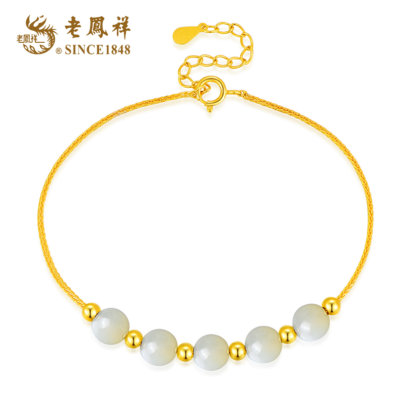 老凤祥S925银镶嵌和田玉福运连连手链