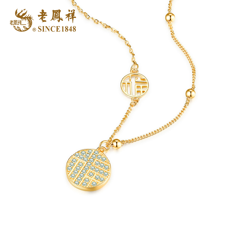 老凤祥S925银轻奢转运福牌国潮设计款锁