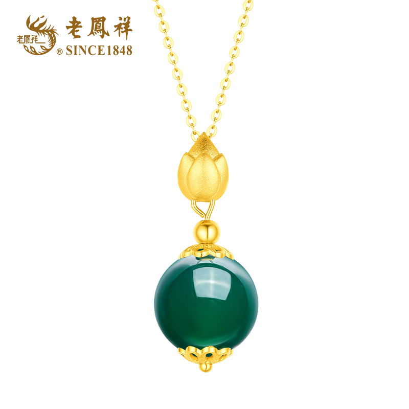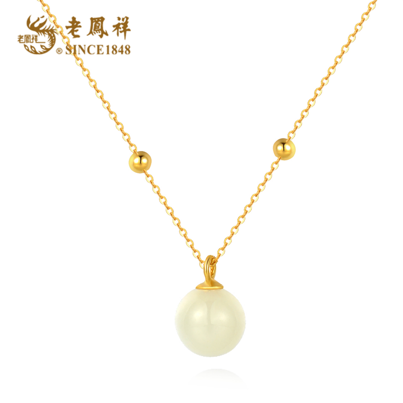 老凤祥S925银镶嵌玉髓圆珠转运珠项链