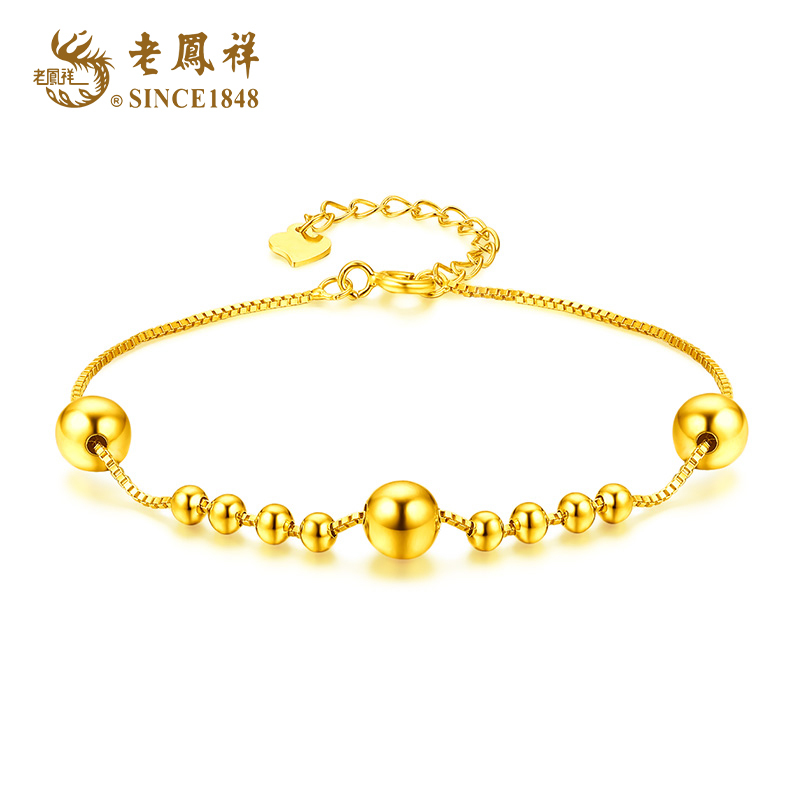 老凤祥S925银猫眼幸运珠手链