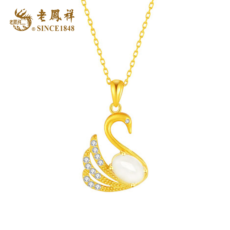 老凤祥S925银镶嵌和田玉美善天鹅项链