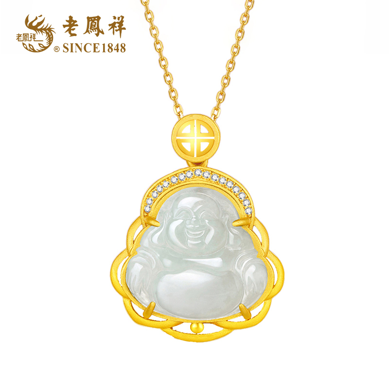 老凤祥S925银镶嵌天然和田玉笑口常开经