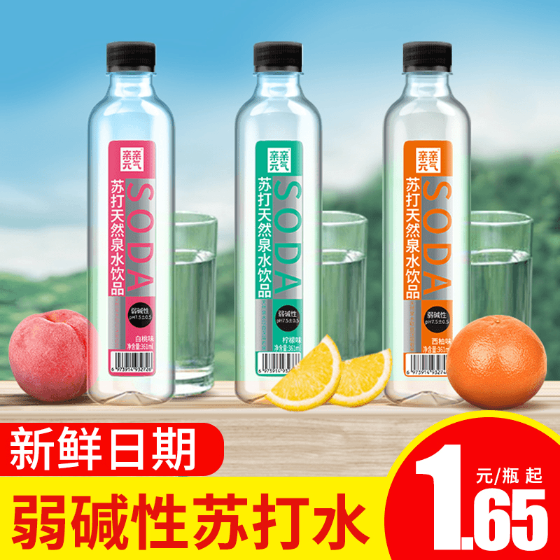 亲亲元气苏打水弱碱性清爽口味天然风味饮料361ml*12瓶新鲜日期