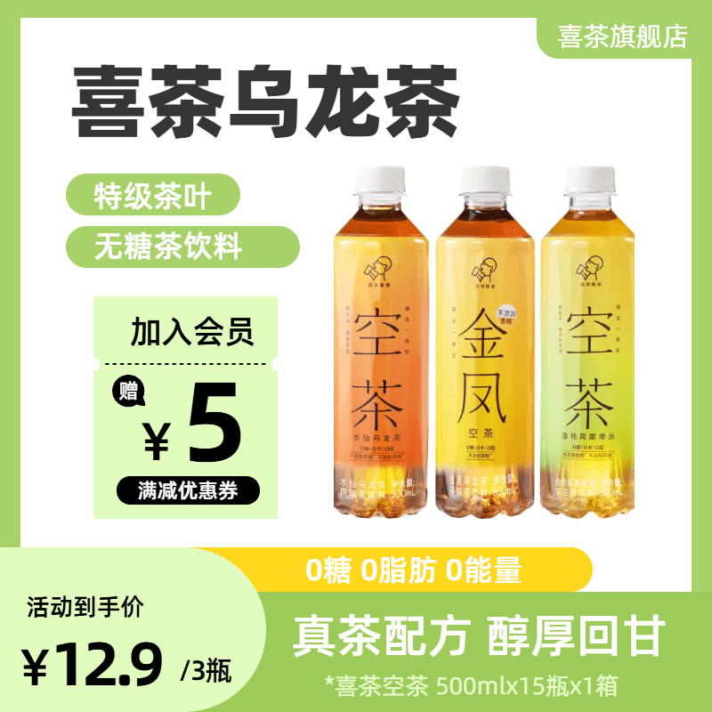 喜茶 空茶无糖饮料0糖零卡零脂茶饮瓶装金桂单丛水仙金凤乌龙茶