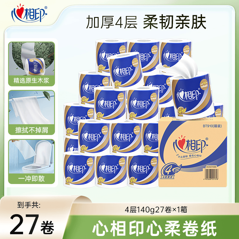 心相印心柔卷纸整箱大号家用27卷140g加厚亲肤柔软无香卫生纸Z