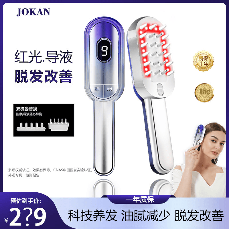 JOKAN红光健发梳按摩导液按摩防增脱头皮激红光控油养育生护发仪