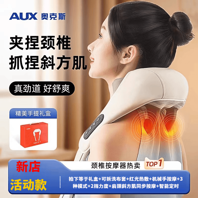 AUX/奥克斯无线预椎按摩器揉捏脖子斜方肌热敷务功能肩颈按摩仪