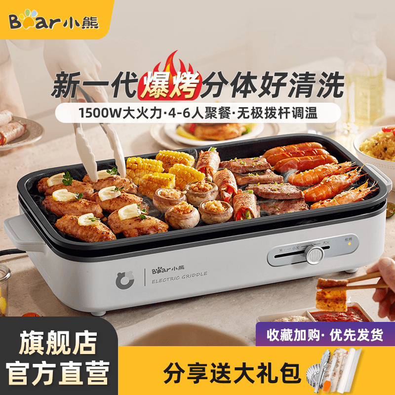 小熊烤肉锅电烤盘家用烤肉炉烤鱼盘一体室内轻烟可拆洗户外烧烤炉