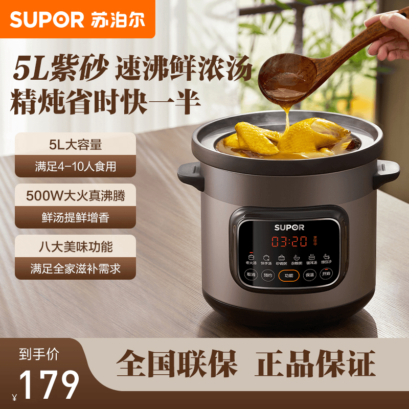 苏泊尔紫陶电炖锅5L大容量家用多功能煲汤锅煮粥锅电炖盅养生锅