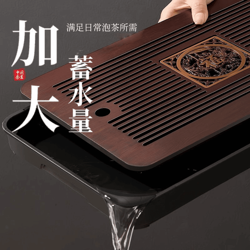 茶具茶盘家用简约小型排水沥水茶托盘储水式干泡盘竹制长方形托盘