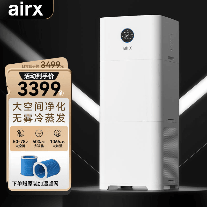 airx多功能加湿净化一体机 净化加湿二合一 智能恒湿净化空气A9H