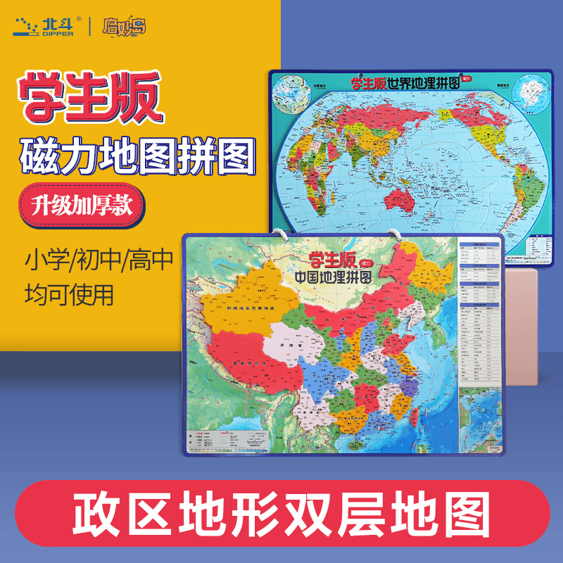 北斗学生磁力拼图中国+世界地理拼图大号