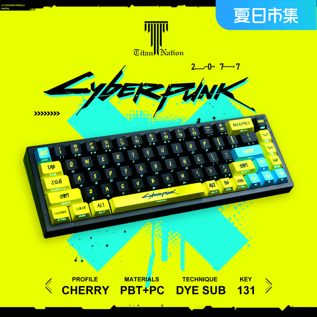 泰坦国度Cyberpunk赛博朋克主题130键PBT+PC侧透透光键帽原厂高度