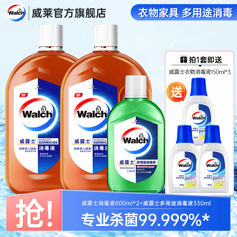 威露士高浓度多用途消毒液 800ml*2 杀菌99.999%家庭装消毒水