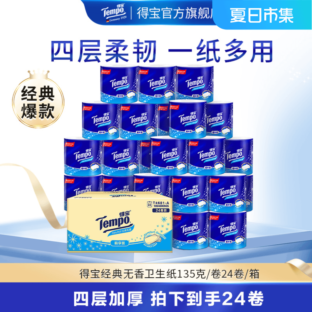 得宝天然卫生卷纸135克24卷整箱装加厚