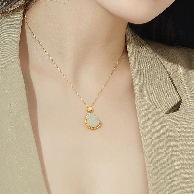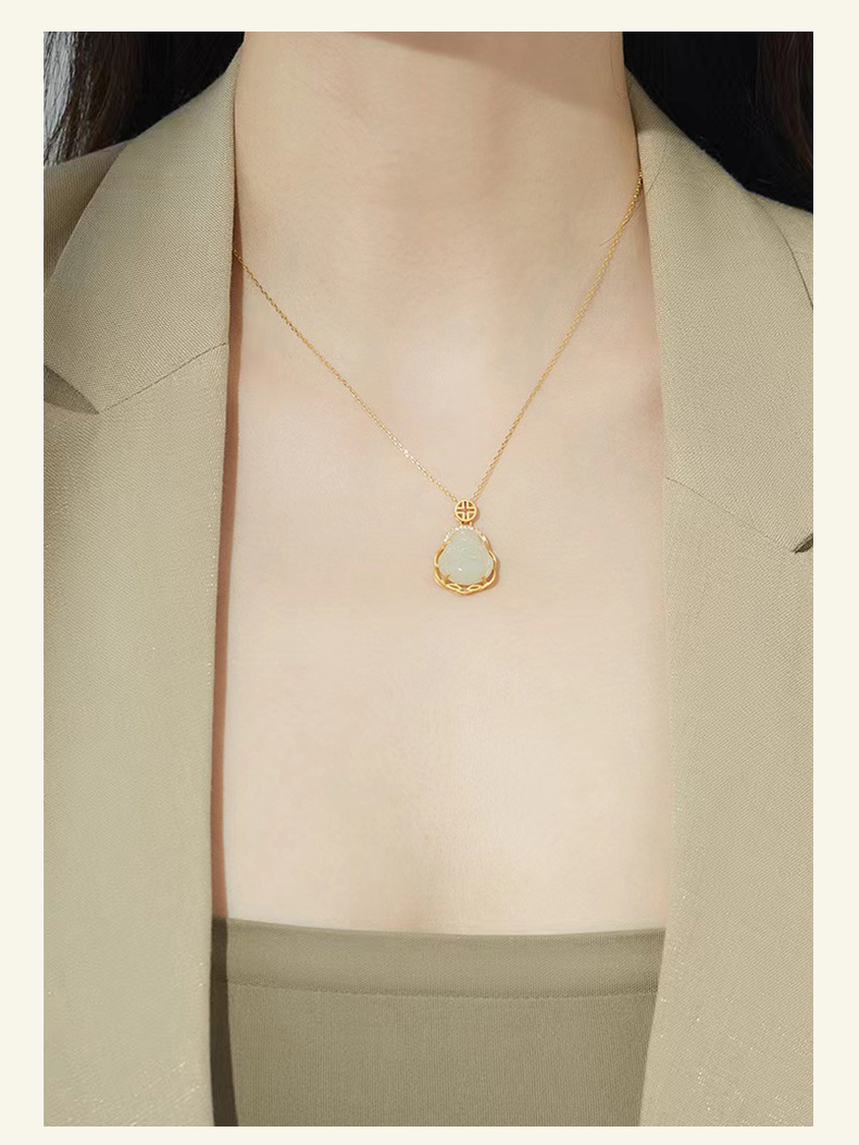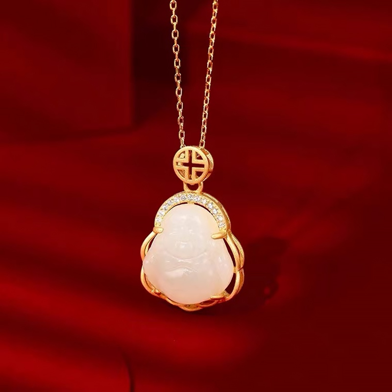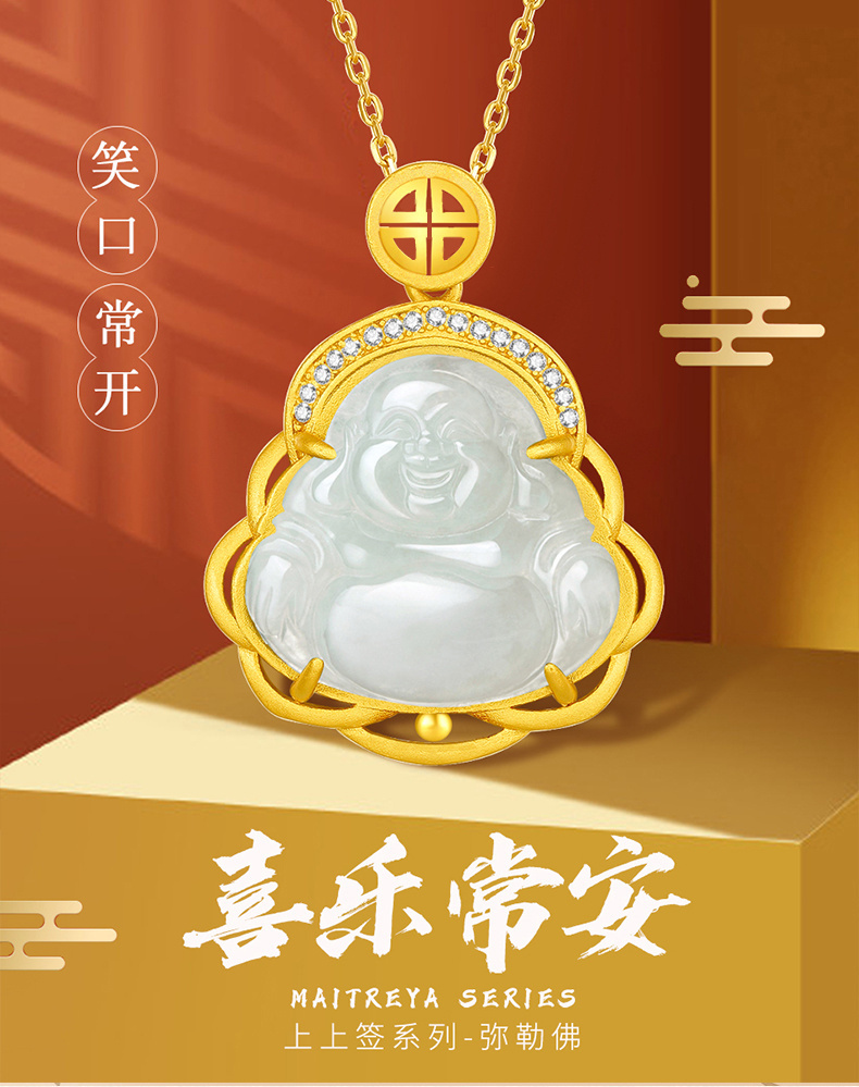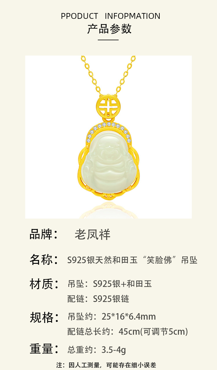 老凤祥S925银镶嵌天然和田玉笑口常开经